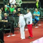 W niedzielę wystartowali nasi kadeci Daniel i Damian w kata. Obaj doszli do półfinału i zajęli miejsca 5-8 w tej konkurencii. Naszą ostatnią zawodniczką była Aleksandra Czerwiecka. Wystartowała w kategorii +65 kg kobiet. Olka dzielnie walczyła przez pierwszą rundę i dogrywką z wyższą i dużo cięższą Ukrainką. Po dogrywce sędziowie jednogłośnie wskazali Ukrainkę, jako zawodniczkę dominującą siłowo w walce.