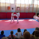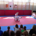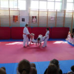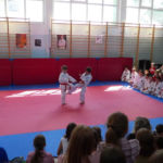 W szkole Podstawowej nr 4 trenuje w sumie 30 osób. Podczas pokazu można było zobaczyć techniki karate, kata i walki w wykonaniu młodych karateków. Na końcu pokazu Sempai Marcin wykonał pokaz tameshiwari łamiąc pustaki techniką „hiji” -czyli łokciem.