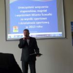 Trener Marek Krejpcio – nagroda I stopnia w wysokości 2400 zł, za działalność sportową na rzecz Miasta Suwałki i wysokie wyniki sportowe szkolonych zawodników.